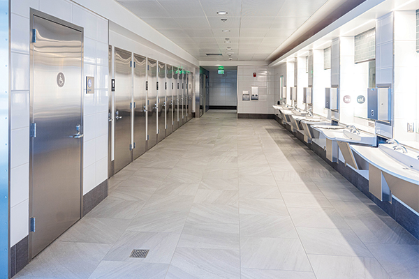 Clean restrooms and comfortable seating areas are located throughout the terminal.